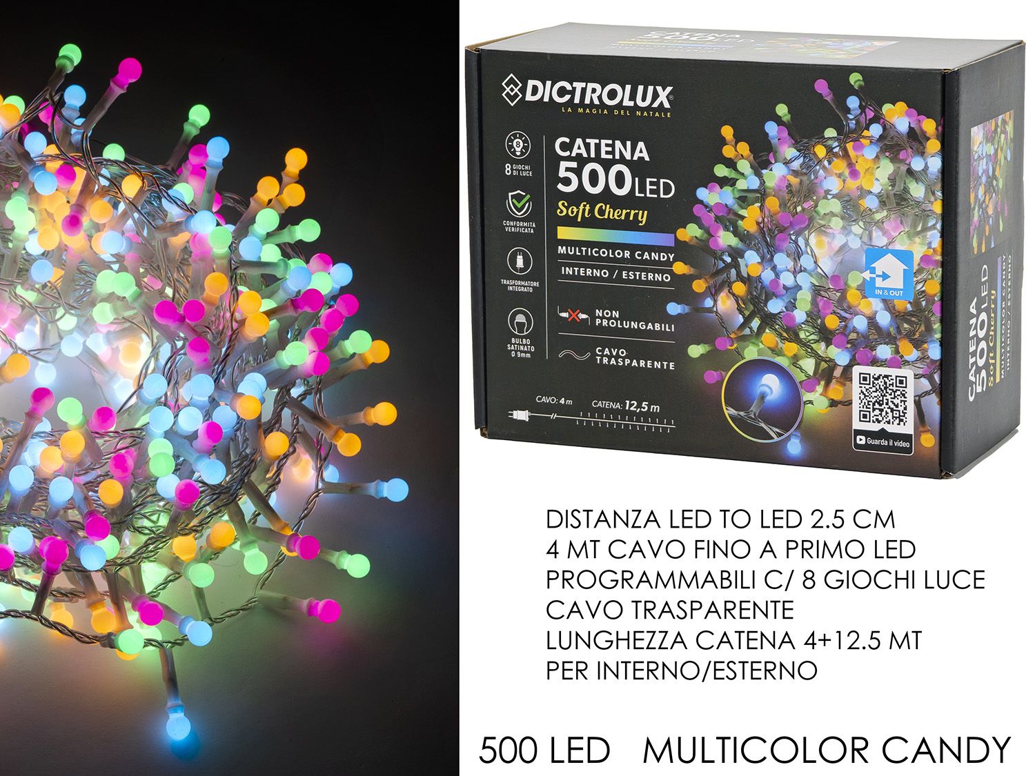 CATENA 500 LED CHERRY MULTICOLOR CAVO TRASPARENTE