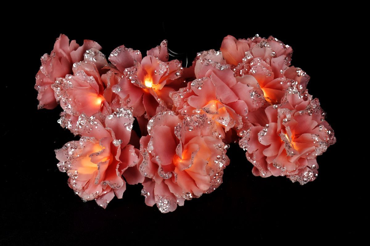 ADDOBBO LUMINOSO COMPOSTO DA 10 PEONIE ROSA CON PETALI GLITTERATI, A BATTERIA