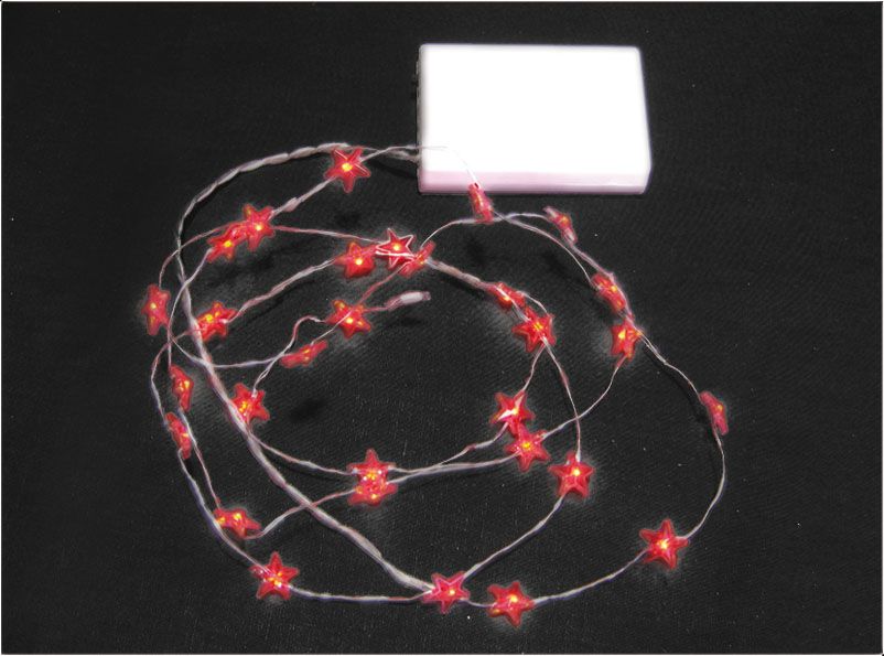 CATENA DI50 STELLINE ROSSE ILLUMINATE DA 50 NANOLED ROSSI A LUCE FISSA, ALIMENTATE DA 3XAA (NON INCLUSE)