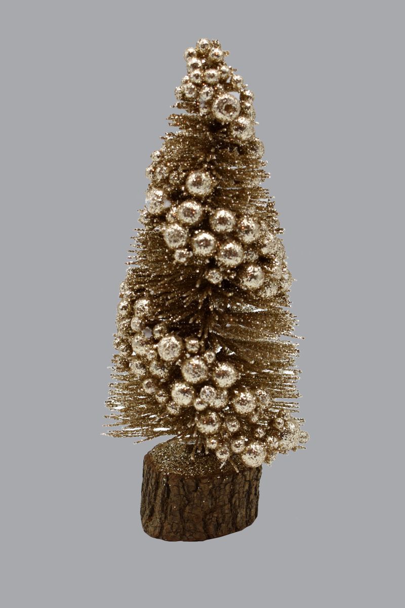 ALBERELLO DI NATALE DORATO CON GLITTER E BACCHE COLOR ORO