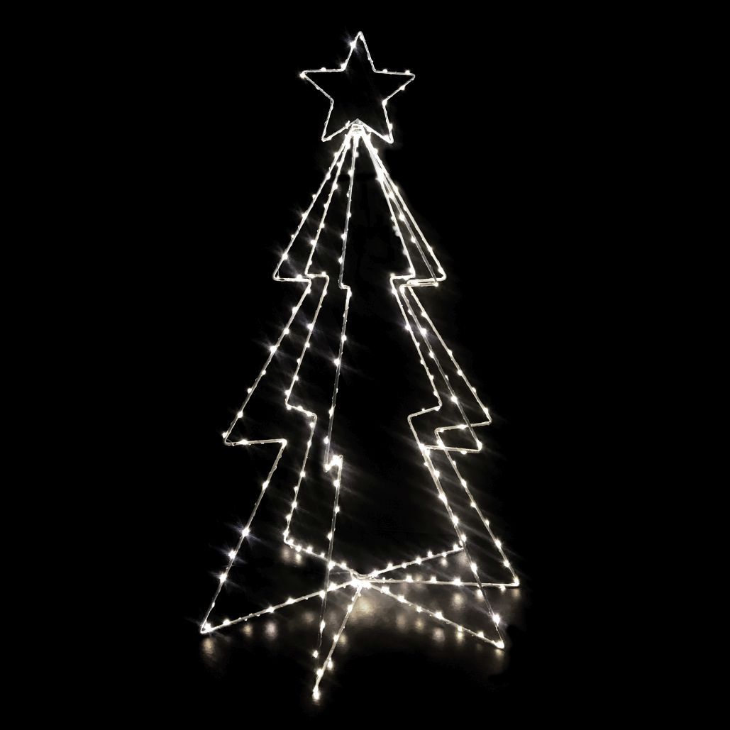 ALBERO DI NATALE  STILIZZATO TRIDIMENSIONALE IN METALLO E GOCCE DI LED BIANCO CALDO