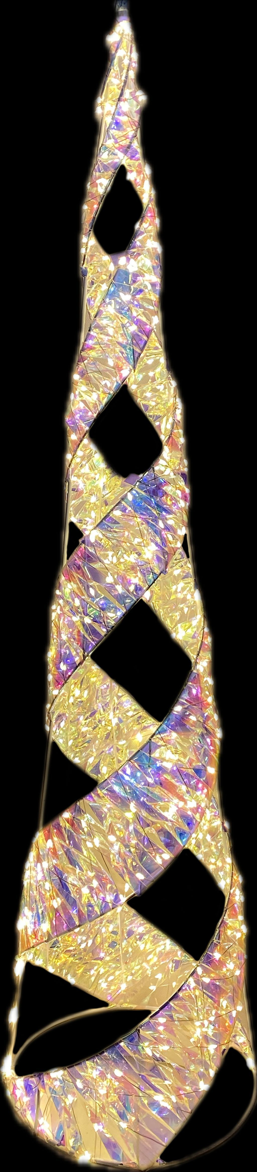 ALBERO DI NATALE STILIZZATO CON STRUTTURA IN METALLO, NASTRO RAIMBOW E 720 GOCCE LED BIANCO CALDO