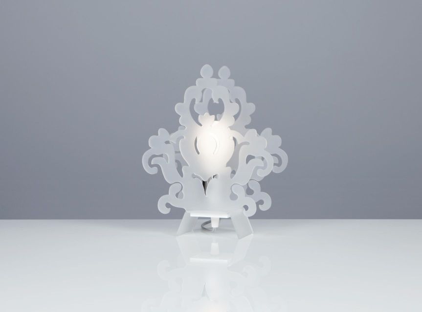 ELEGANTE LAMPADA DA TAVOLO A FORMA FLOREALE, IN METACRILATO COLOR CROMOLITE