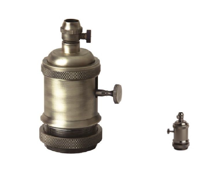 PORTALAMPADA E27 IN METALLO COLOR CANNA DI FUCILE LUCIDO CON INTERRUTTORE ROTATIVO