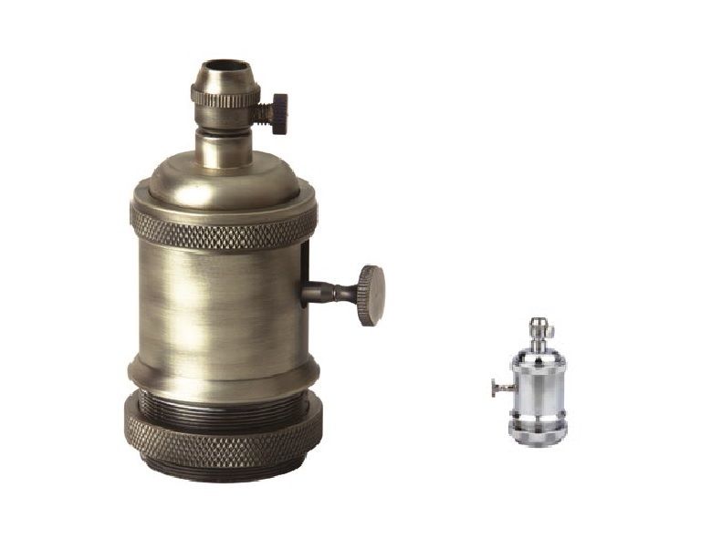 PORTALAMPADA E27 IN METALLO COLOR CROMO  LUCIDO CON INTERRUTTORE ROTATIVO
