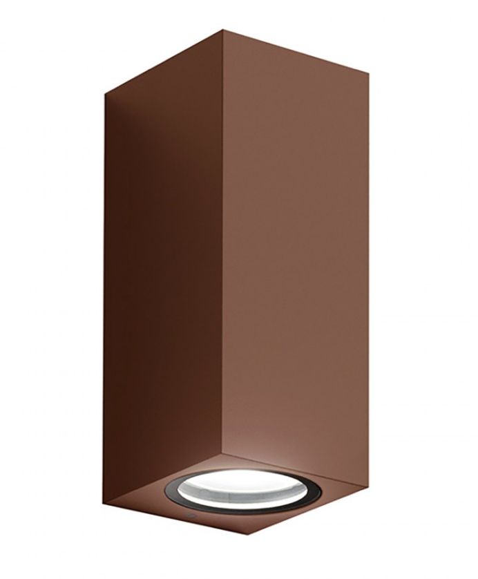 APPLIQUE CON STRUTTURA IN ALLUMINIO E FINITURA COLOR RUGGINE. DIFFFUSORE IN VETRO. LAMPADINA NON INCLUSA GU10