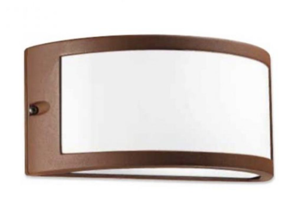 APPLIQUE CON STRUTTURA IN ALLUMINIO E FINITURA COLOR RUGGINE. DIFFFUSORE IN METACRILATO LUCIDO. LAMPADINE NON INCLUSE
