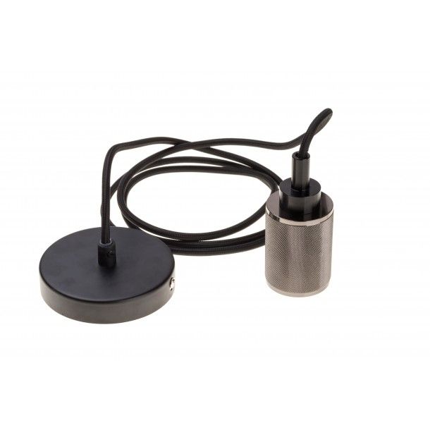 SOSPENSIONE CON ROSONE NERO, PORTALAMPADA IN METALLO MODERNO NERO  E  CAVO NERO.