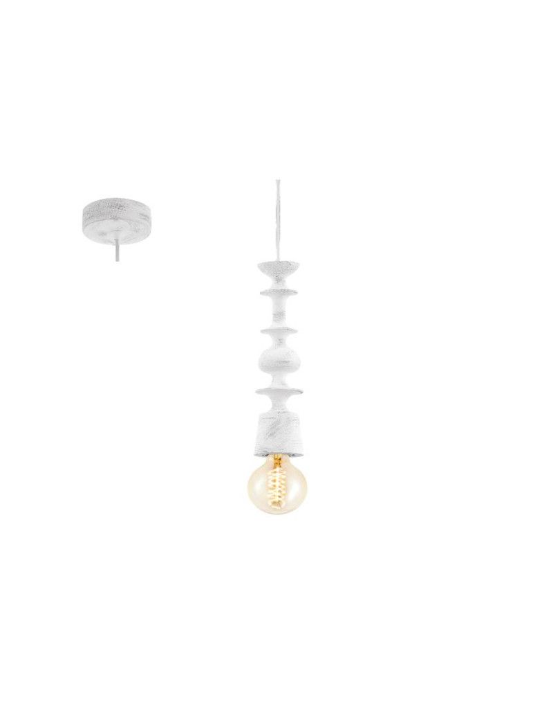 SOSPENSIONE CON ROSONE E PORTALAMPADA IN IN LEGNO COLOR AVORIO