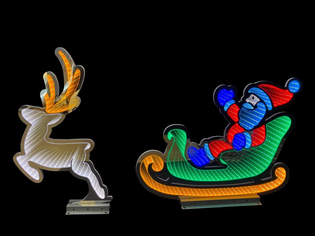 BABBO NATALE IN SLITTA CON RENNA INFINITY LIGHT CON LUCE LED MULTICOLOR