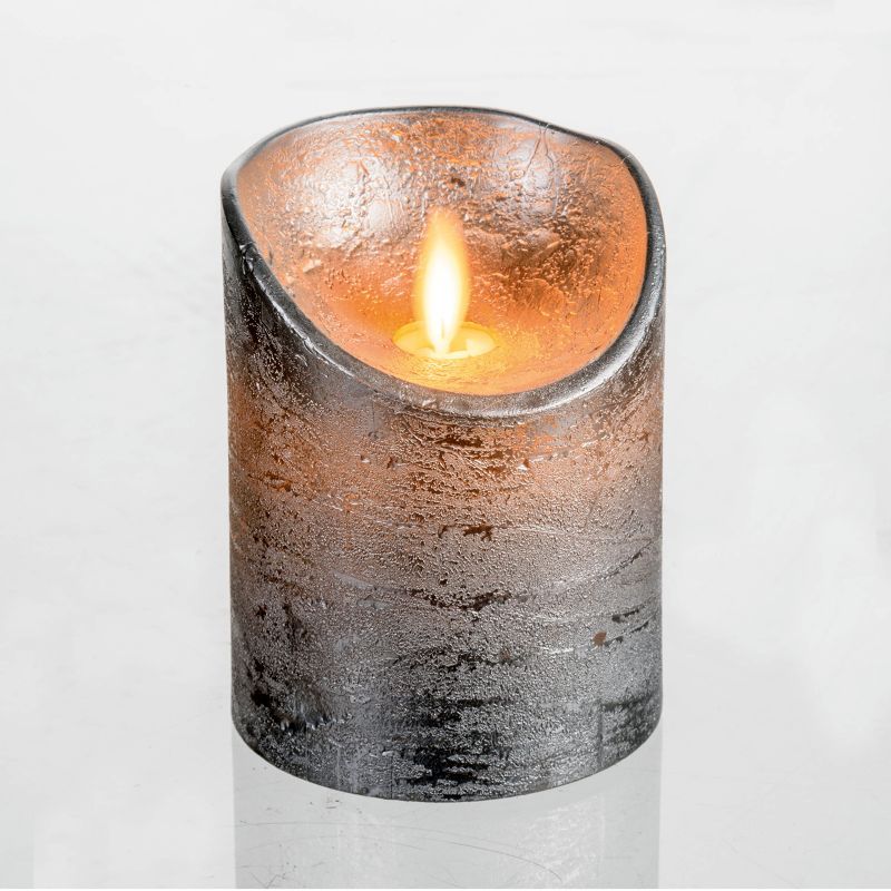 CANDELA CILINDRICA CERA ARGENTO SILVER FINITURA RUSTIC DIAM 7.5