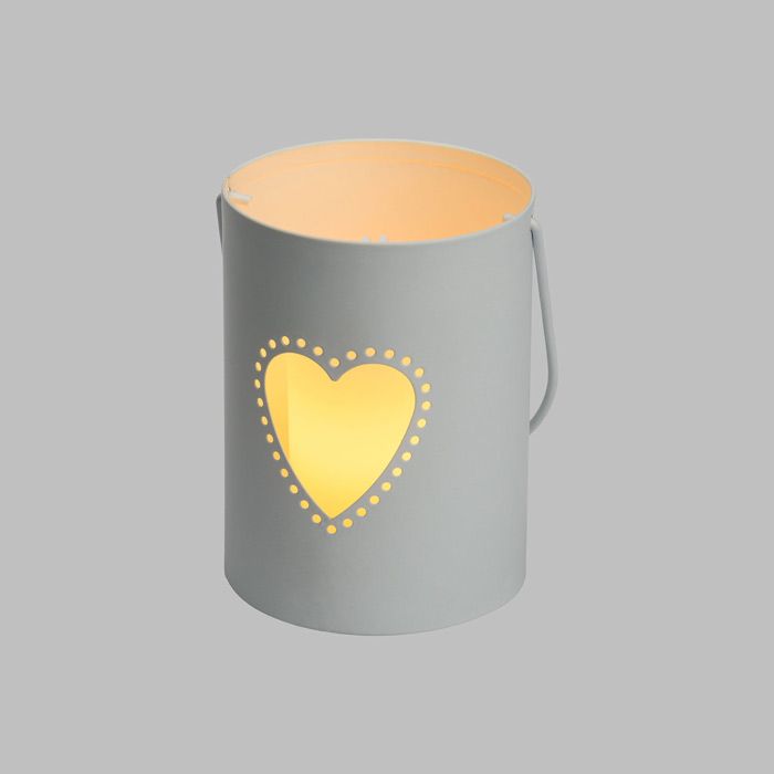 SECCHIELLO CILINDRICO IN METALLO BUCATO DECORO CUORE CON CANDELA CERA AVORIO EFFETTO FIAMMA MOVIMENTO, A BATTERIA