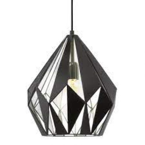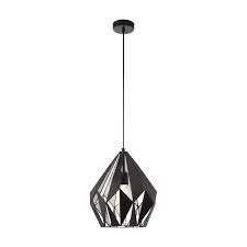 SOSPENSIONE IN METALLO NERO E INTERNO ARGENTO, CAVO NERO E ROSONE IN METALLO NERO