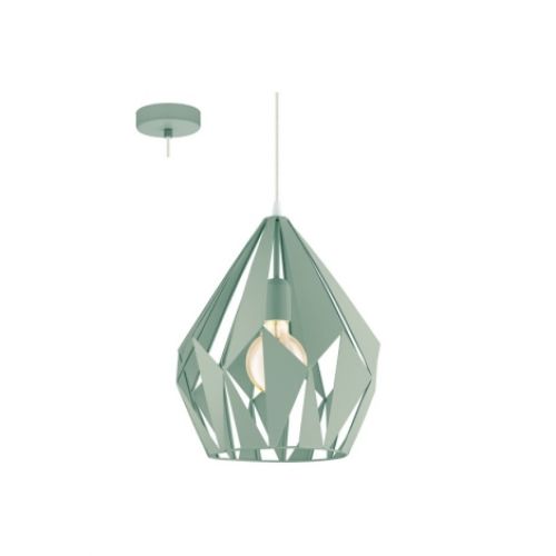 SOSPENSIONE   IN METALLO VERDE PASTELLO, CAVO BIANCO E ROSONE IN METALLO VERDE PASTELLO
