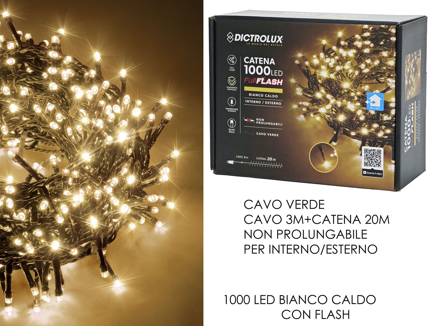 CATENE 1000 LED BIANCO CALDO FULL FLASH