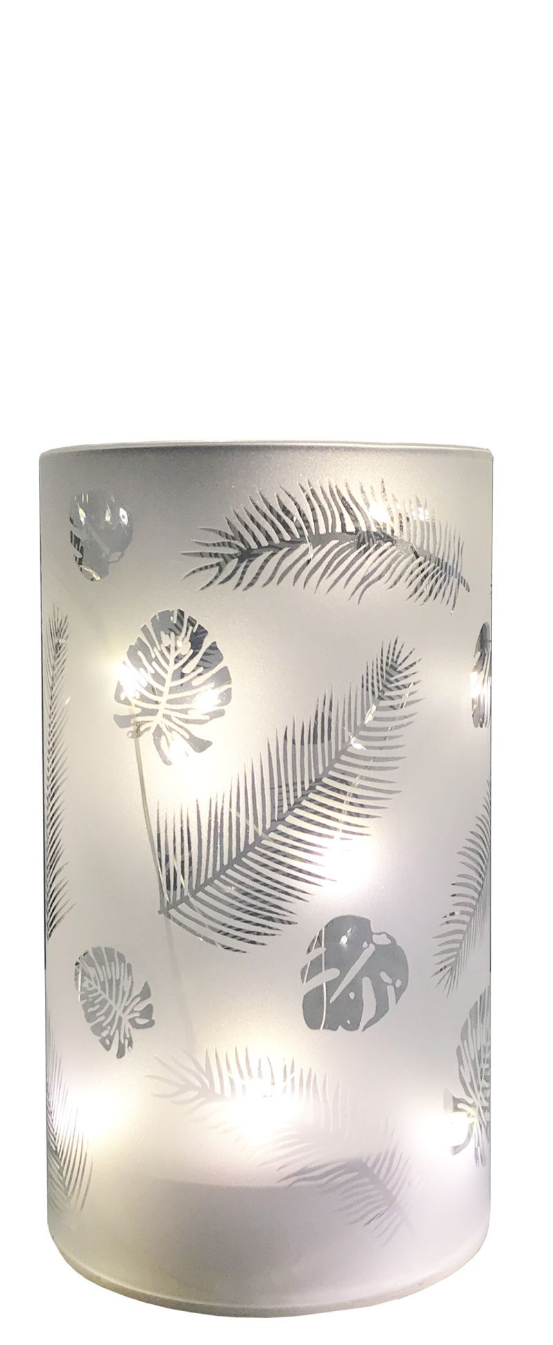CILINDRO IN VETRO FROST CON DISEGNI E GOCCE DI LED