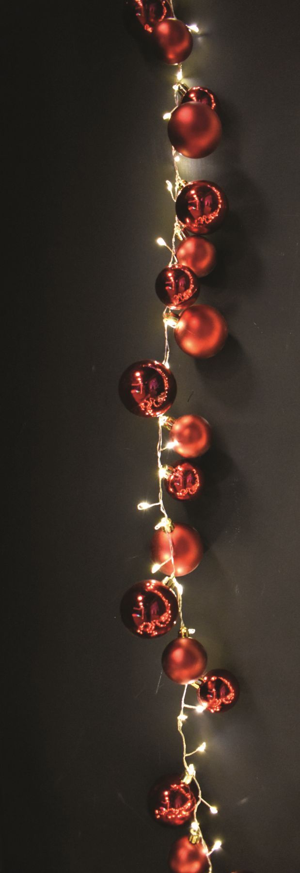 COLLANA DI SFERETTE ROSSO LUCIDO E OPACO, DIAM. 4/5 CM E LED A LUCE CALDA