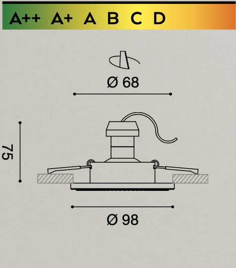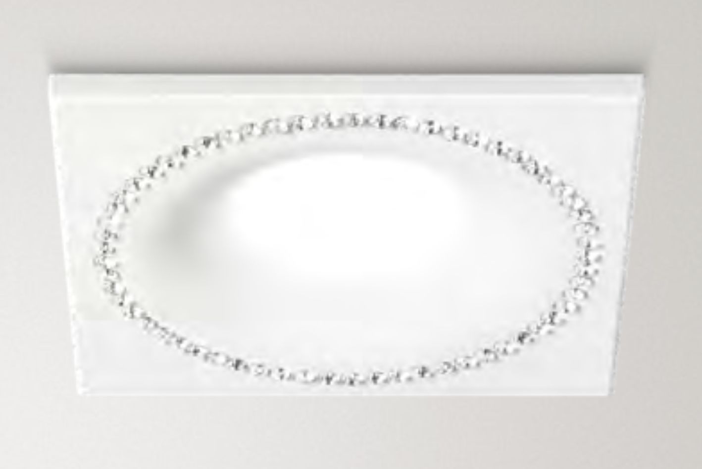 SPOT INCASSABILE IN ALLUMINIO QUADRATA CON FINITURE BIANCO OPACO E STRASS DI CRISTALLO TRASPARENTE POSIZIONATI SU UNA FILA