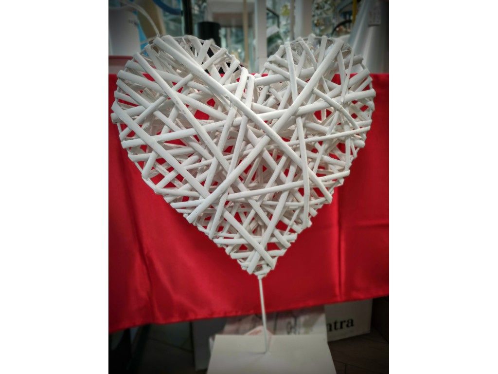 CUORE IN LEGNO BIANCO DA APPOGGIO, CON BASE E SOSTEGNO IN METALLO BIANCO