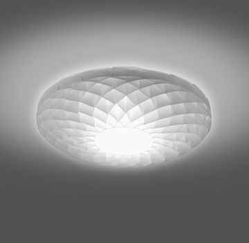 NUOVA E MODERNAPLAFONIERA LED PROGETTATA DA MATTEO AGATI, REALIZZATA IN POLILUX CON UN' AMPIA STRUTTURA AD INCASTRO CHE CREA UNA DIFFUSIONE DI RIFLESSI LUMINOSI