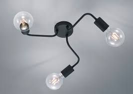 PLAFONIERA DIALLO IN METALLO NERO CON TRE BRACCI E PORTA LAMPADE E 27