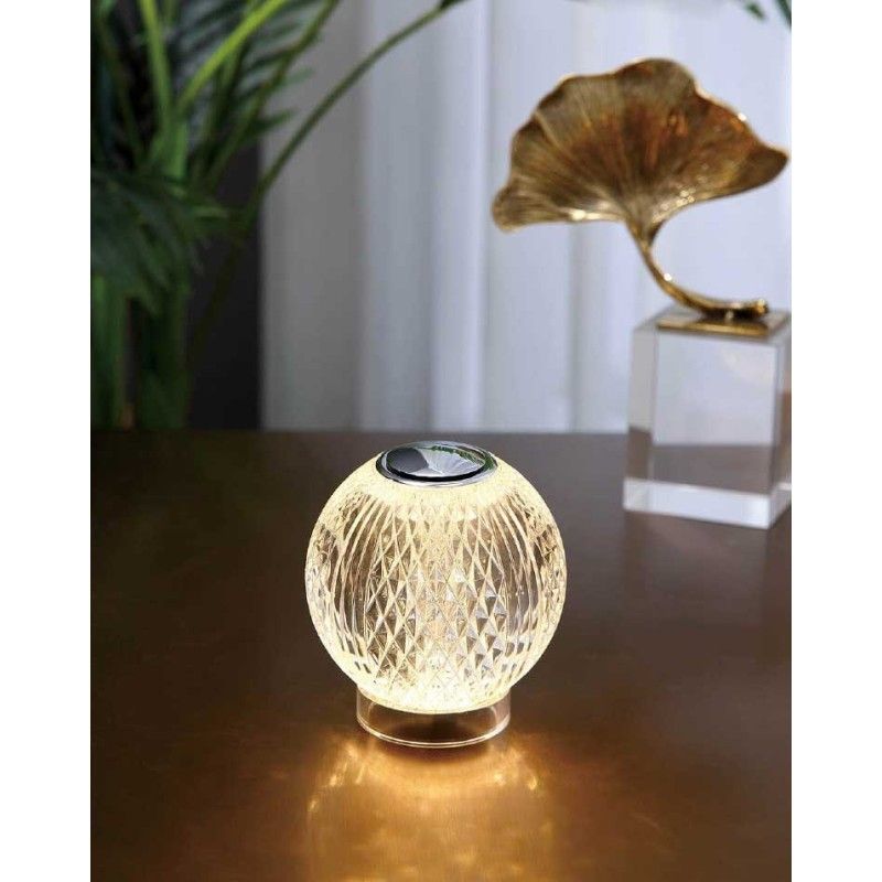 LAMPADA DA TAVOLO RICARICABILE CON DIFFUSORE IN ACRILICO CON TAGLIO A DIAMANTE E ORO