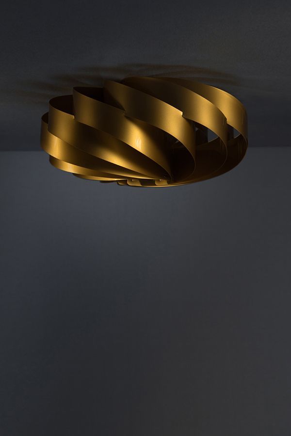 NUOVA E MODERNA PLAFONIERA REALIZZATA IN POLILUX COMPOSTA DA UN CILINDRO CENTRALE BIANCO CIRCONDATO DA UNA MORBIDA SPIRALE DORATA CHE DONA BELLEZZA ED ELEGANZA ALLA STANZA