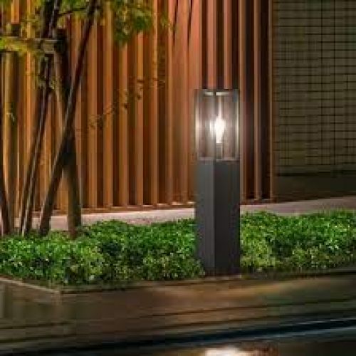 PALO DAGIARDINO IN PRESSOFUSIONE DI ALLUMINIO COLOR ANTRACITE PER LAMPADA E27 E VETRO TRASPARENTE