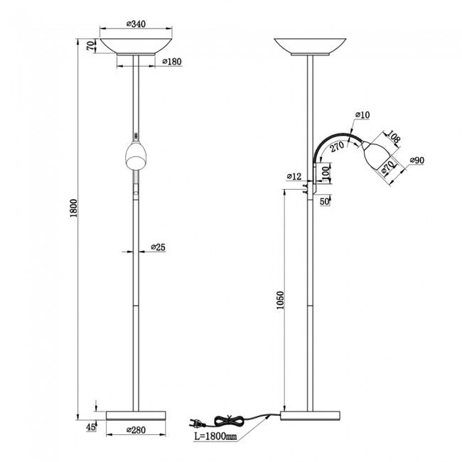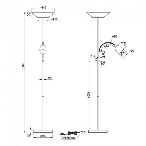 PIANTANA IN METALLO COLOR NICHEL OPACO, CON DOPPIO PUNTO LUCE ED ACCENSIONE SEPARATA: