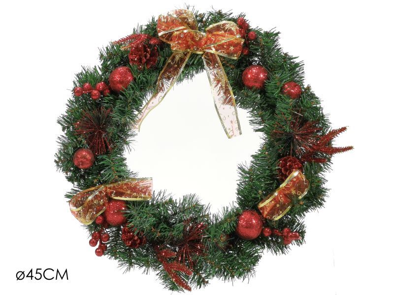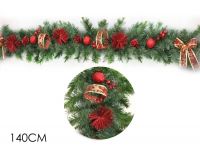 GHIRLANDA NATALIZIA VERDE CON PALLINE E FIOCCHI ROSSI