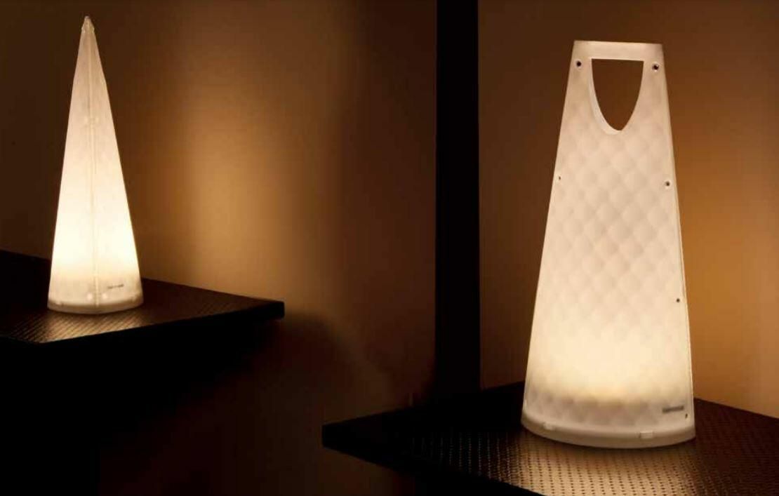 LAMPADA DA TAVOLO LED DA ESTERNO ED INTERNO, REALIZZATA IN SANDYLEX E BASE IN PMMA (BIANCA)