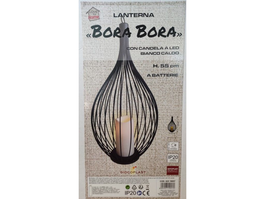 LANTERNA CON CANDELA A LED BIANCO CALDO A BATTERIA, CON GANCIO PER APPENDERLA, PER USO INTERNO O ESTERNO SE RIPARATO