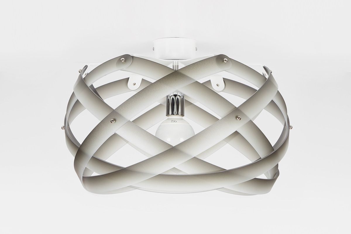 PLAFONIERA IN METACRILATO CON DECORO NUANCE GRIGIO, STRUTTURA IN METALLO VERNICIATO BIANCO, PARTICOLARI CROMATI E DIFFUSORE PMMA NATURAL OPAL
