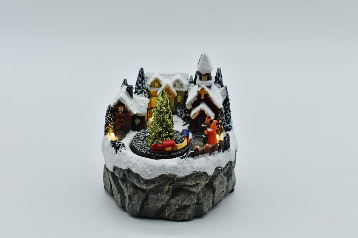 PAESAGGIO INVERNALE CON ALBERO ROTANTE E TRENINO A BATTERIA