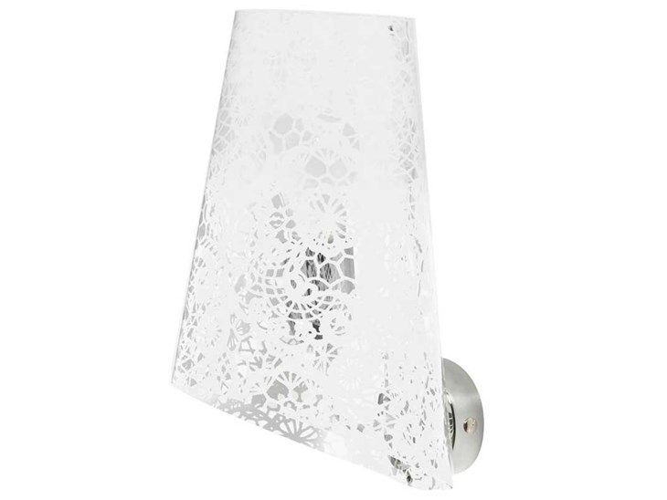 APPLIQUE CON PARALUME CONICO IN POLICARBONATO TRASPARENTE, DECORATO CON TEXTURE PIZZO BIANCO