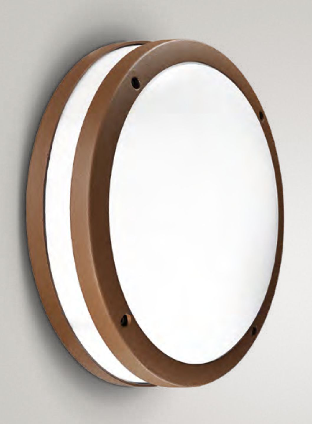 PLAFONIERA E APPLIQUE CON STRUTTURA IN ALLUMINIO. FINITURA IN RUGGINE. DIFFUSORE IN METACRILATO LUCIDO. LAMPADINE NON INCLUSE