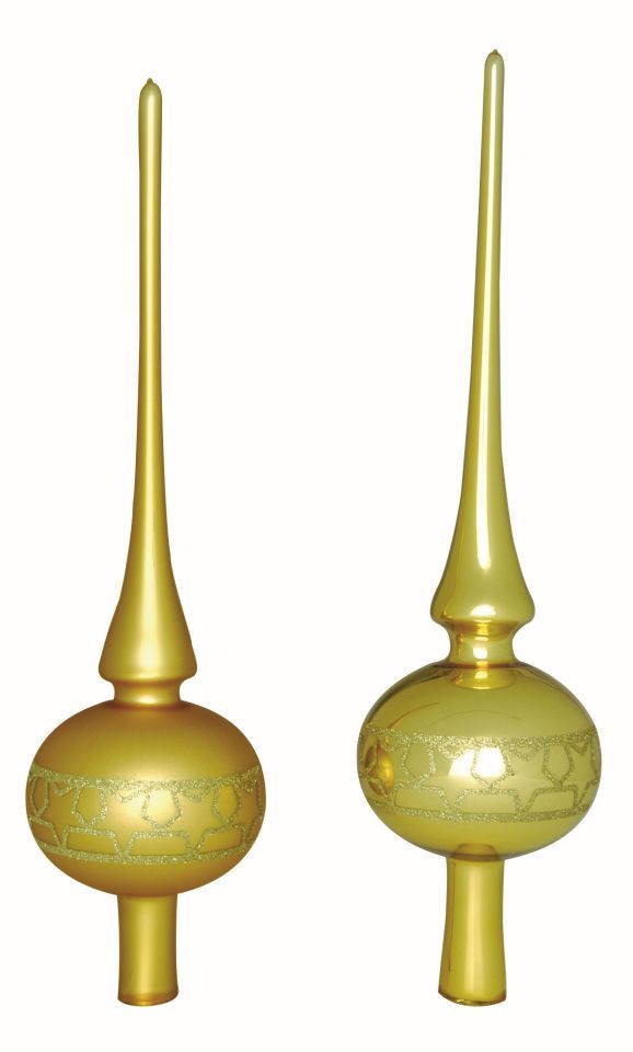 CLASSICO PUNTALE PER ALBERO DI NATALE, IN VETRO COLOR ORO DECORATO MATT/SHINY