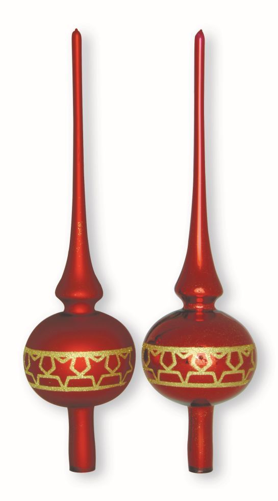 CLASSICO PUNTALE PER ALBERO DI NATALE, IN VETRO COLOR ROSSO, DECORATO MATT/SHINY