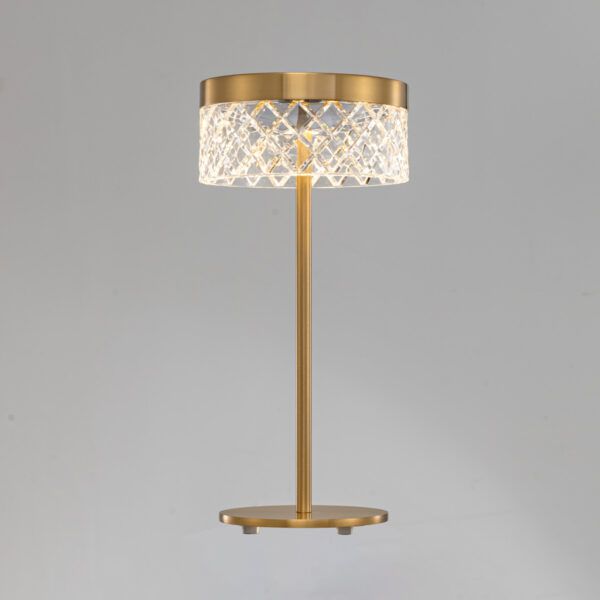 LUMETTO COSTRUITO DA DIFFUSORI IN ACRILICO SFACETTATI, RACCOLTI DA UN ANELLLO IN METALLO E BASE DI METALLO DORATI