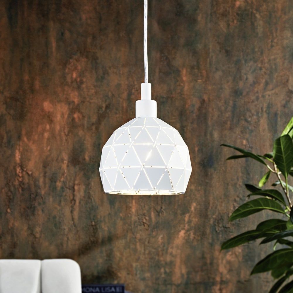 SOSPENSIONE IN METALLO BIANCA, CAVO BIANCO E ROSONE IN METALLO BIANCO