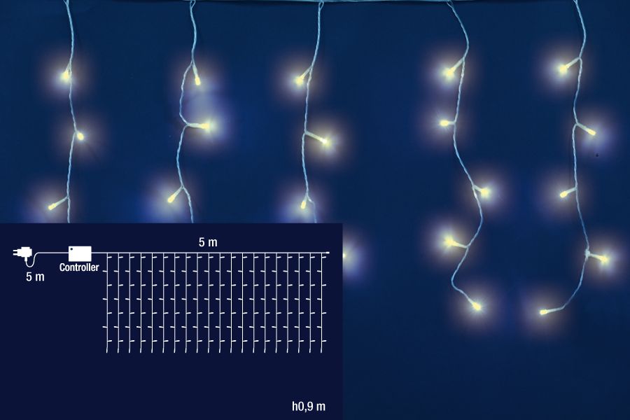 TENDA CON 160 LED BIANCO CALDO E CAVO TRASPARENTE CON GIOCHI DI LUCE
