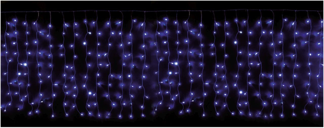 CASCATA LUMINOSA CON 400 LED BIANCO GHIACCIO/BLU E GIOCHI DI LUCE