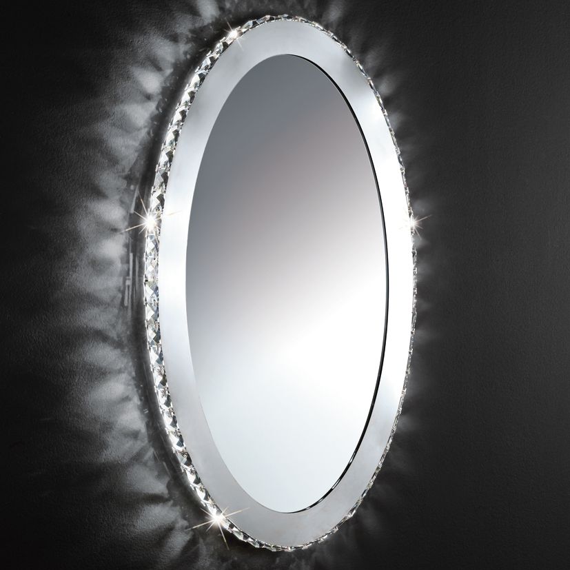 SPECCHIO OVALE LUMINOSO CROMO CON CRISTALLI