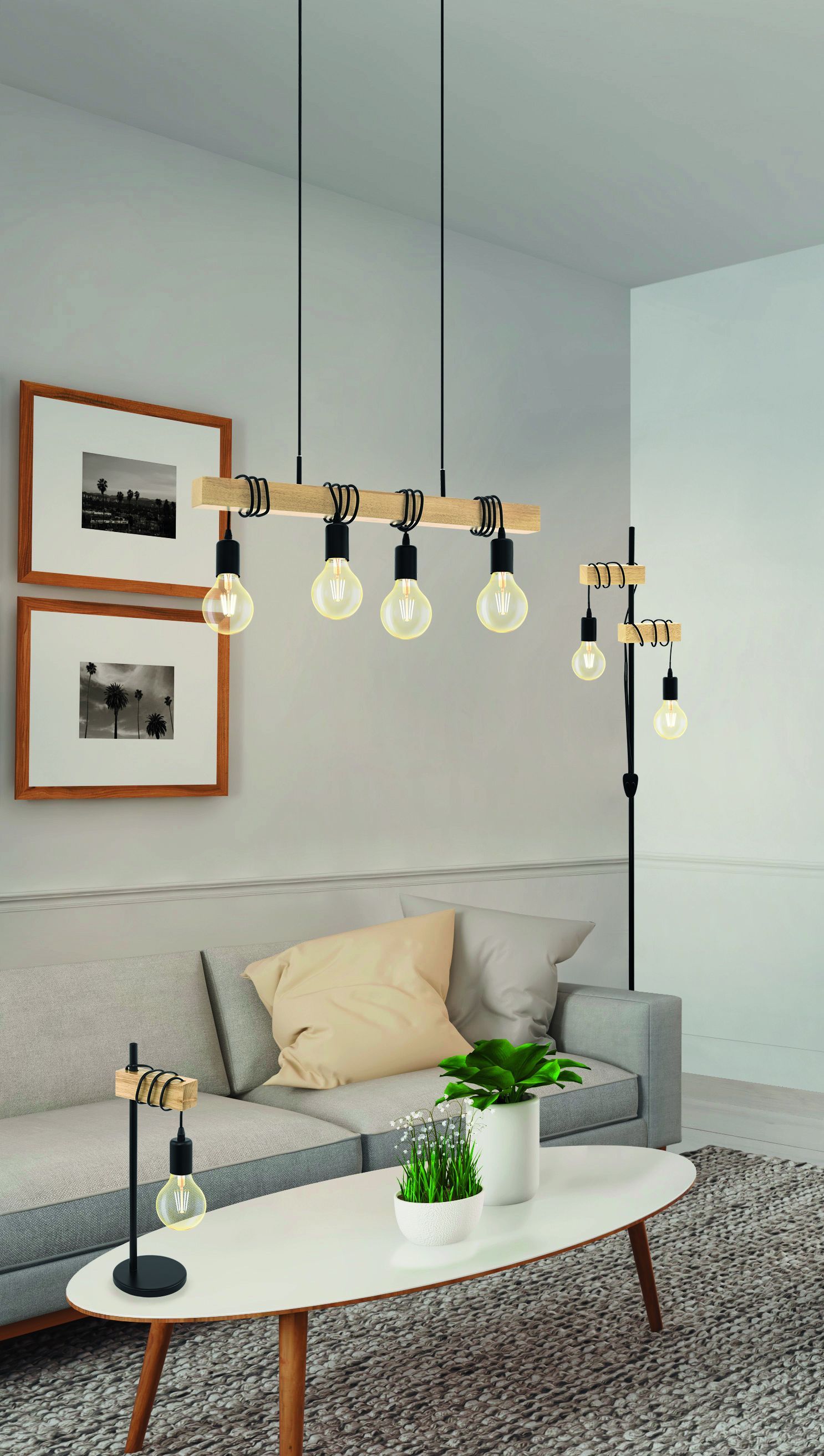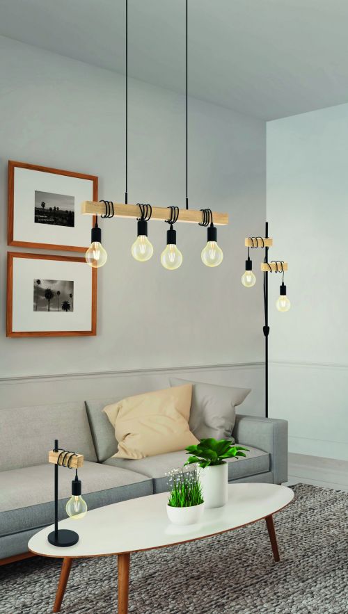 SOSPENSIONE STILE INDUSTRIAL IN LEGNO E METALLO NERO A QUATTRO CALATE