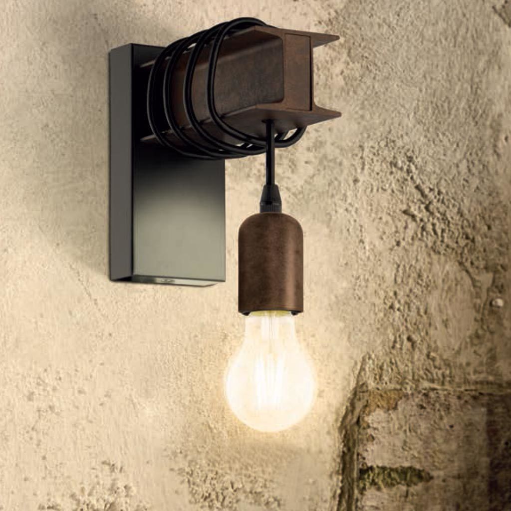 LAMPADA DA PARETE SINGOLA CON FINITURE IN ACCIAIO MARRONE ANTICATO, STILE INDUSTRIALE, AD UNA LAMPADA
