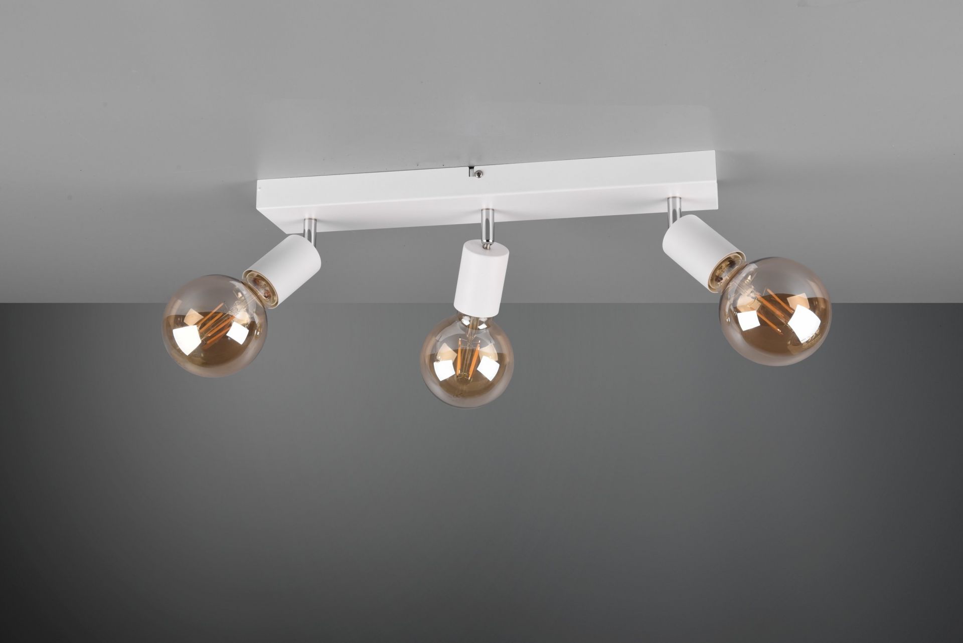 PUNTO LUCE FORMATO DA TRE SPOT IN LINEA, ORIENTABILI, IN METALLO BIANCO, CON TRE PORTALAMPADA E27